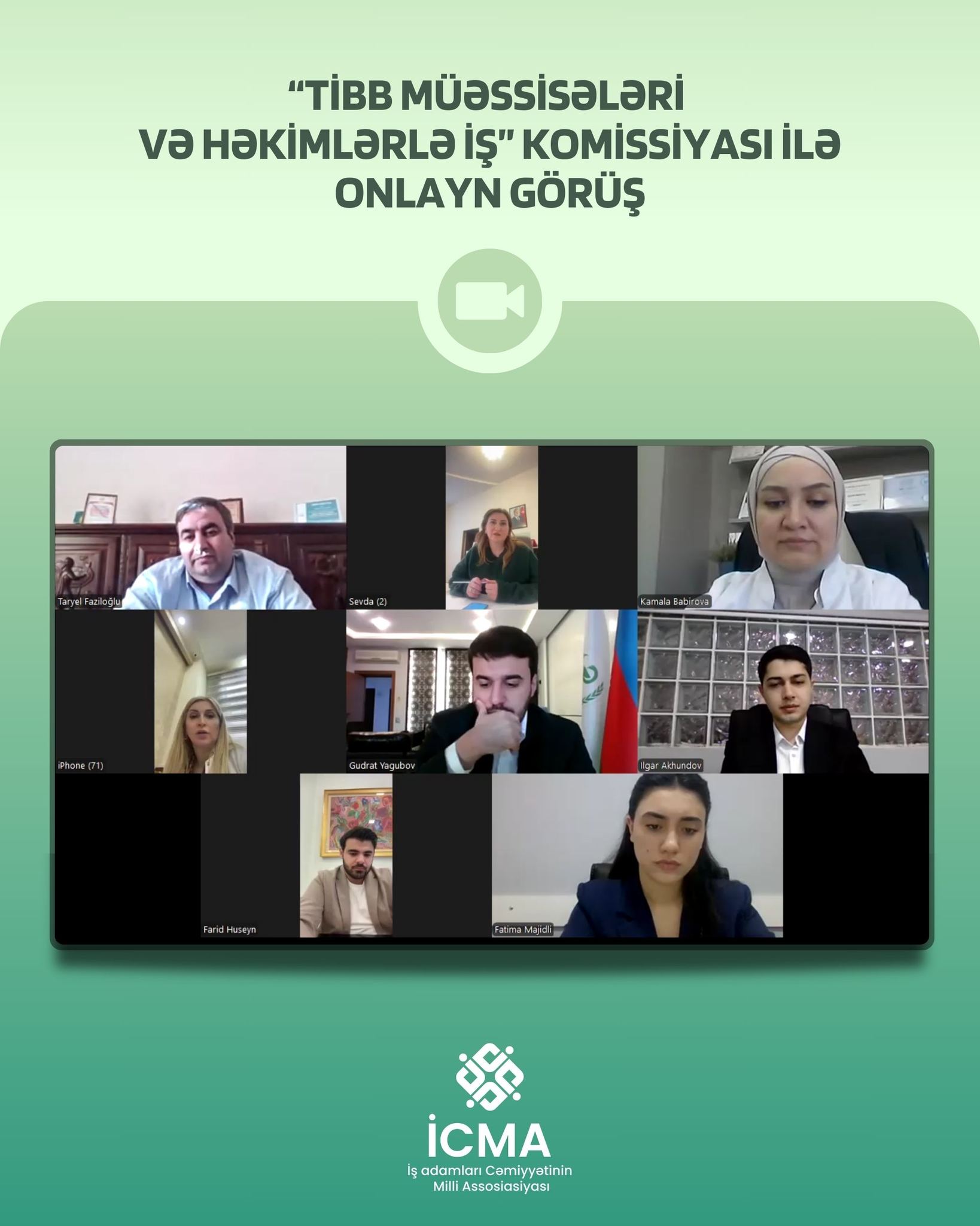5 mart tarixində İş adamları Cəmiyyətinin Milli Assosiasiyasının (İCMA) “Tibb müəssisələri və həkimlərlə iş” komissiyasının onlayn iclası keçirilib. Görüşdə komissiyanın rüblük fəaliyyət planı çərçivəsində həyata keçirilmiş işlər qiymətləndirilib və nəticələr müzakirə olunub. Eyni zamanda, mart ayında komissiyanın təşkilatçılığı ilə baş tutacaq təlimlər barədə ətraflı məlumat verilib, bu təlimlərin məqsədi və əhəmiyyəti vurğulanıb.